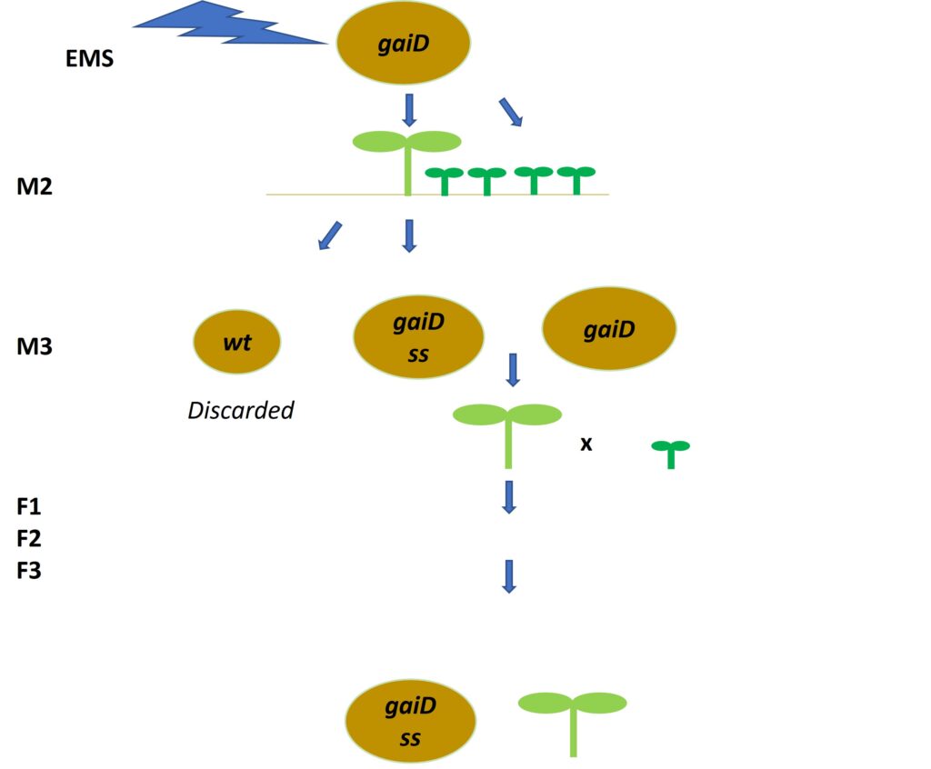 On the other hand, we are screening for mutations in a gai-1 background. By searching for seeds larger than those of gai-1 itself, we hope to identify the genes that execute the gai-1 signal. As mentioned, gai-1 plants are smaller, so we are also looking for mutations that revert this phenotype without affecting seed size. In other words, we want to understand how larger seeds are produced and whether this phenotype can be separated from the one causing smaller plants. Therefore, we propose a purely scientific objective that also has a clear biotechnological application.